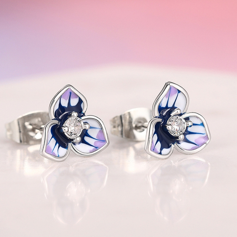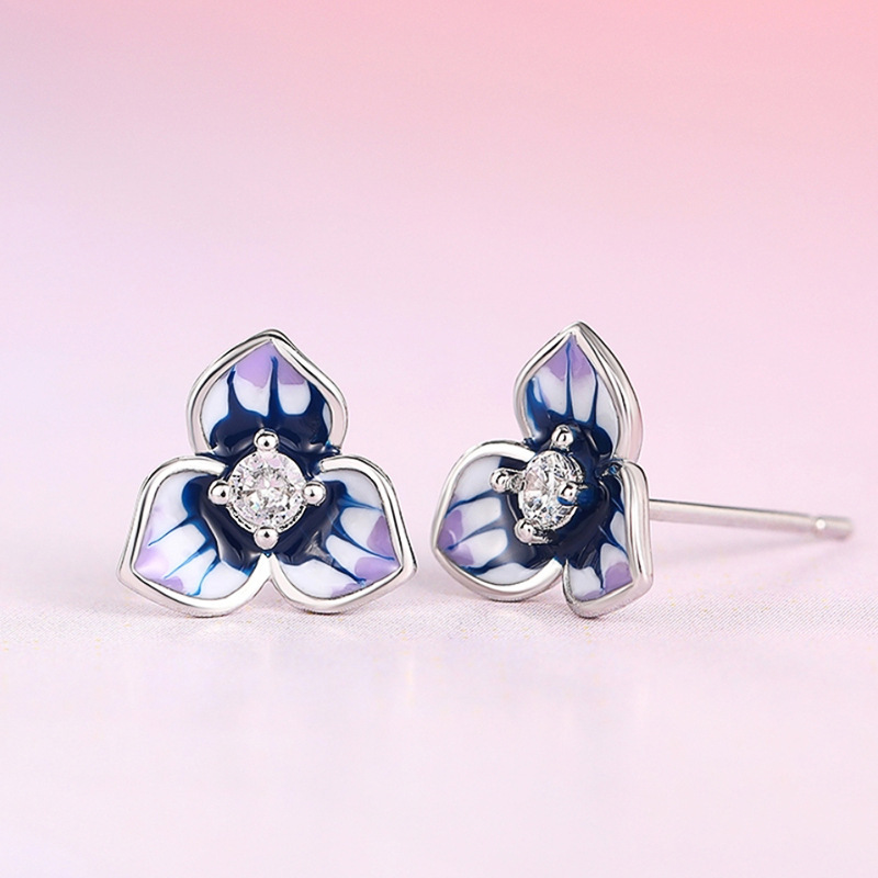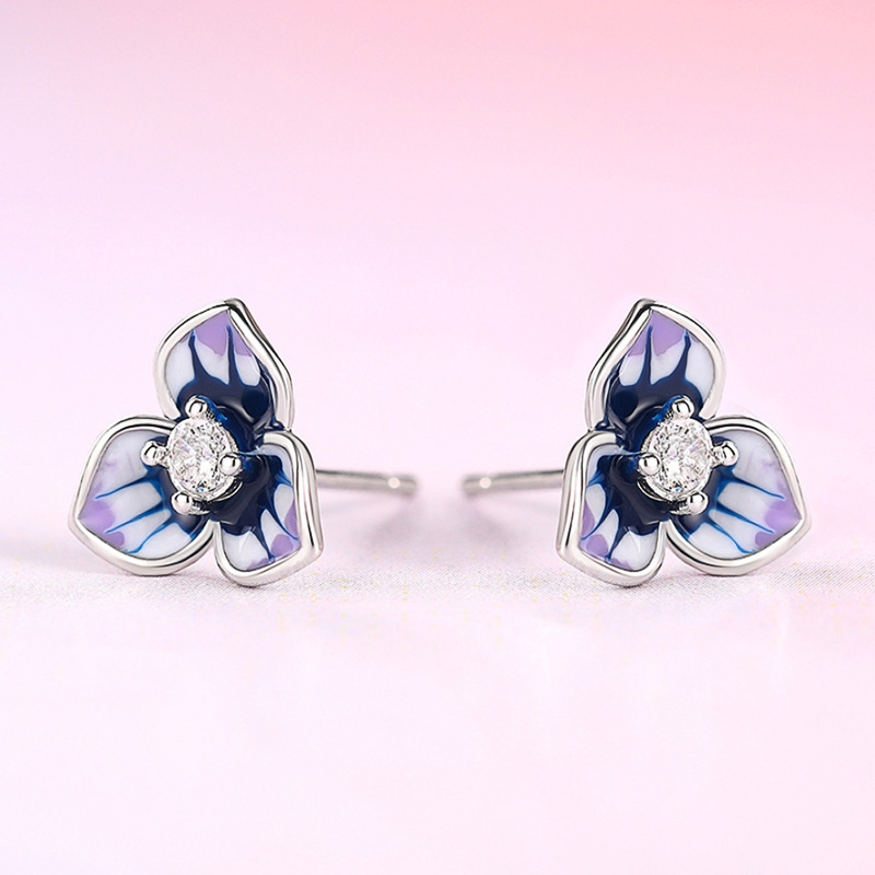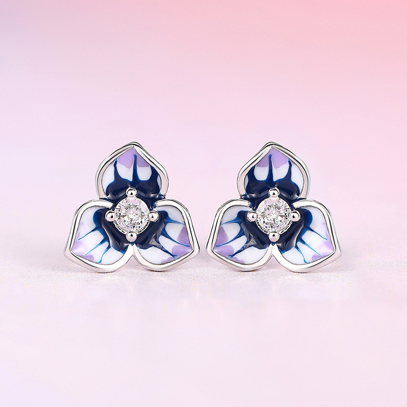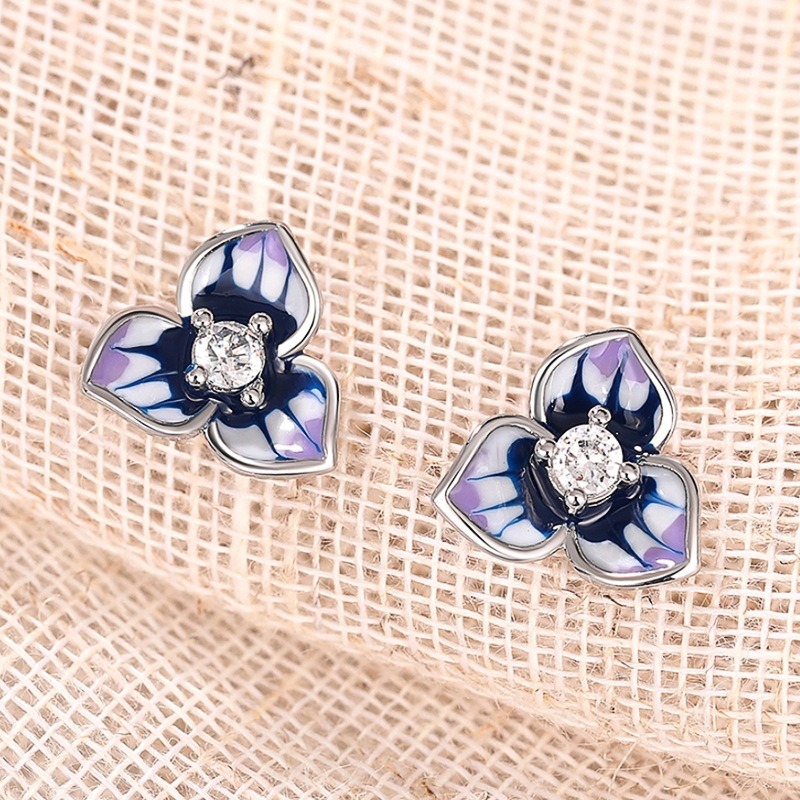 Morning Glory Oil-drop Stud Earrings For Women With Micro-paved Zircon